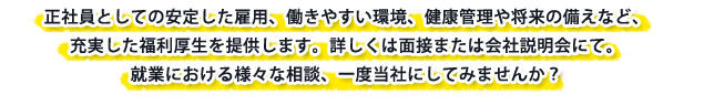 社員ひとりひとりの働きやすさのために、福利厚生を整えております。
