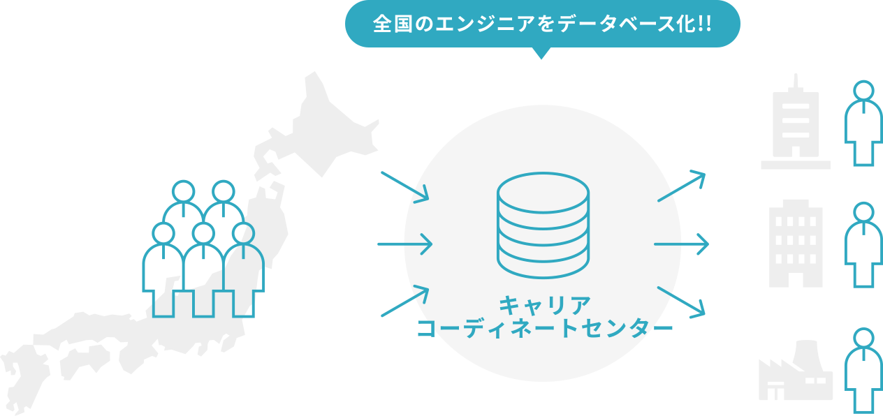 多彩な採用チャネルを駆使し、全国46都道府県で採用活動を実施。年間75,000名を上回る応募者の中からスキル・素養・適性等を見極めたうえでエンジニアを採用。 「キャリアコーディネートセンター」によるエンジニアの一元管理により、適材適所のマッチングを実現。さまざまな人材要望にスピーディーかつ柔軟に対応します。